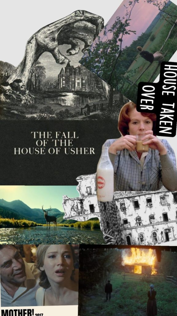 الأجواء الشبحية في بيت آشر لإدجار آلن بو1، وتداخل الأحلام والذكريات والواقع في مرآة أندريه تاركوفسكي2، والإيقاع البطيء والروتين الممل المُكرَّر في جين ديلمان3، والغرابة غير المريحة وما يعقبها من دمار في أم أرنوفسكي4، وهو ما يعيدني إلى الطبيعة الأم قبل وجود الإنسان في قصة وادي الذهب؛ أحد فصول ملحمة باستر سكراغز5، وأخيرًا صورة مرسومة لما تخلفه الحرب من دمار وركام6.