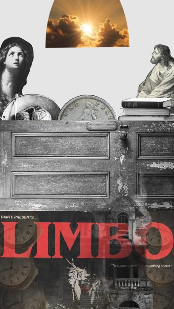 يقدِّم الكولاج تفسيرًا دينيًا وخلاصيًا للقصة القصيرة. شعرت أنَّ القصة رحلة صعود عبر الدائرة الأولى من جحيم دانتي (الليمبو) بدلًا من الهبوط، حيث يبدو أنَّ البطل وأخته عالقان في الليمبو. يُصوِّر الكولاج صعودهما التدريجي والتحرر من الشلل داخل منزلهما، إذ يعبران الباب الخشبي الضخم، الذي يمثل بوابة بين الليمبو والعالم الخارجي، فيتركان وراءهما جميع ممتلكاتهما الدنيوية؛ كتبه وكرات خيوطها. وفي النهاية، يصعدان إلى الجنة مجازيًا من خلال التحرر من حالتهما المجمدة، ودخول عالم جديد من الإمكانيات دون إمكانية العودة إلى الماضي، لهذا السبب، يتخلص البطل من المفتاح. على الرغم من أنَّ القصة تميل نحو رعب المجهول، اخترت أن يكون تفسيري مختلفًا من خلال هذا المثال على الترجمة بين السيميائية.