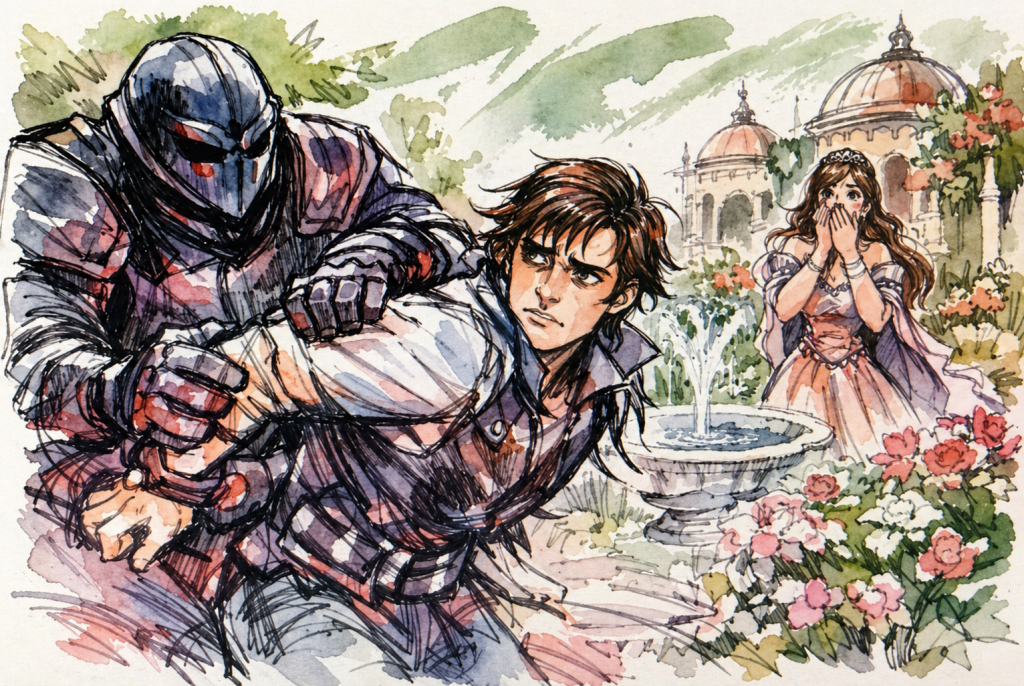 ولم تكن تعلمُ فحسب في أيِّ الغرفتينِ تقفُ السيدةُ مستعدةً للخروجِ بوجنتينِ متوردتينِ ووجهٍ مشرقٍ إذا ما فُتِحَ بابُها، بل كانت تعلمُ مَنْ هي تلك السيدةُ أيضًا. لقد كانت واحدةً من أجملِ آنساتِ البلاطِ وأروعهن، وقد اختيرتْ لتكونَ مكافأةً للشابِ المتهمِ في حال ثَبَتَتْ براءتُهُ من جريمةِ السعي إلى فتاة أرفعُ منه شأنًا؛ وكانت الأميرةُ تكرهُها. فلطالما رأت –أو توهمت أنَّها رأت– هذه المخلوقة الجميلة وهي ترمق حبيبها بنظرات إعجاب، وكانت تظن أحيانًا أنَّ تلك النظرات قد فُهمت، بل ورُدَّ عليها. وكانت تراهما يتحدثان معًا من حين لآخر؛ لم يكن ذلك إلا للحظة أو لحظتين، ولكن يمكن قول الكثير في حيز ضيق من الزمن؛ لعل حديثهما كان في مواضيع تافهة، ولكن كيف لها أن تعرف ذلك؟ كانت الفتاة فاتنة، لكنَّها تجرأت على رفع عينيها إلى حبيب الأميرة؛ وبكل ما في دمائها الهمجية من حدة، تلك الدماء التي ورثتها عن أسلافها البربريين، كانت الأميرة تكره تلك المرأة التي توردت وارتجفت خلف ذلك الباب الصامت.